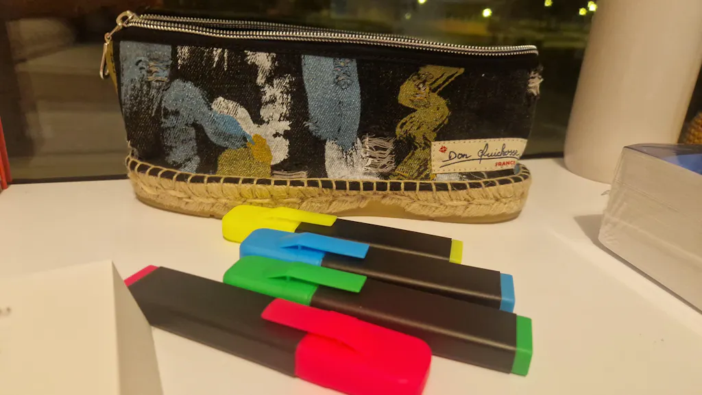 Chaque trousse est unique et cousue à la main, montée sur une véritable semelle d’espadrille.